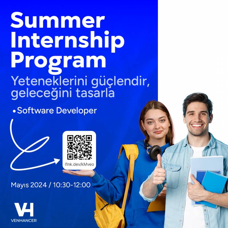 Venhancer olarak üniversite öğrencilerine stajlarını yapabilme imkânı tanıyoruz. 21 Mayıs Salı günü Şirket Tanıtım Toplantısı etkinliği gerçekleştiriyoruz. Etkinlik online olup görseldeki link üzerinden ulaşabilirsiniz. QR kod ile başvuru yapmayı unutmayınız.