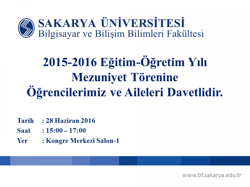 2015-2016 Eğitim-Öğretim Yılı Mezuniyet Törenine Öğrencilerimiz ve Aileleri Davetlidir.