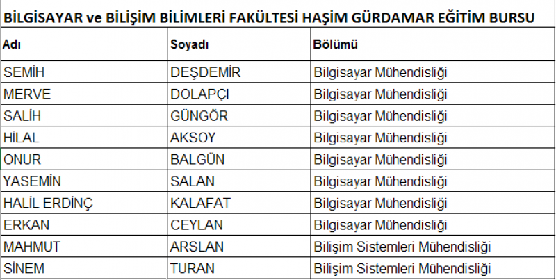 Haşim Gürdamar Eğitim Bursu almaya hak kazanan öğrenci listesi ektedir.